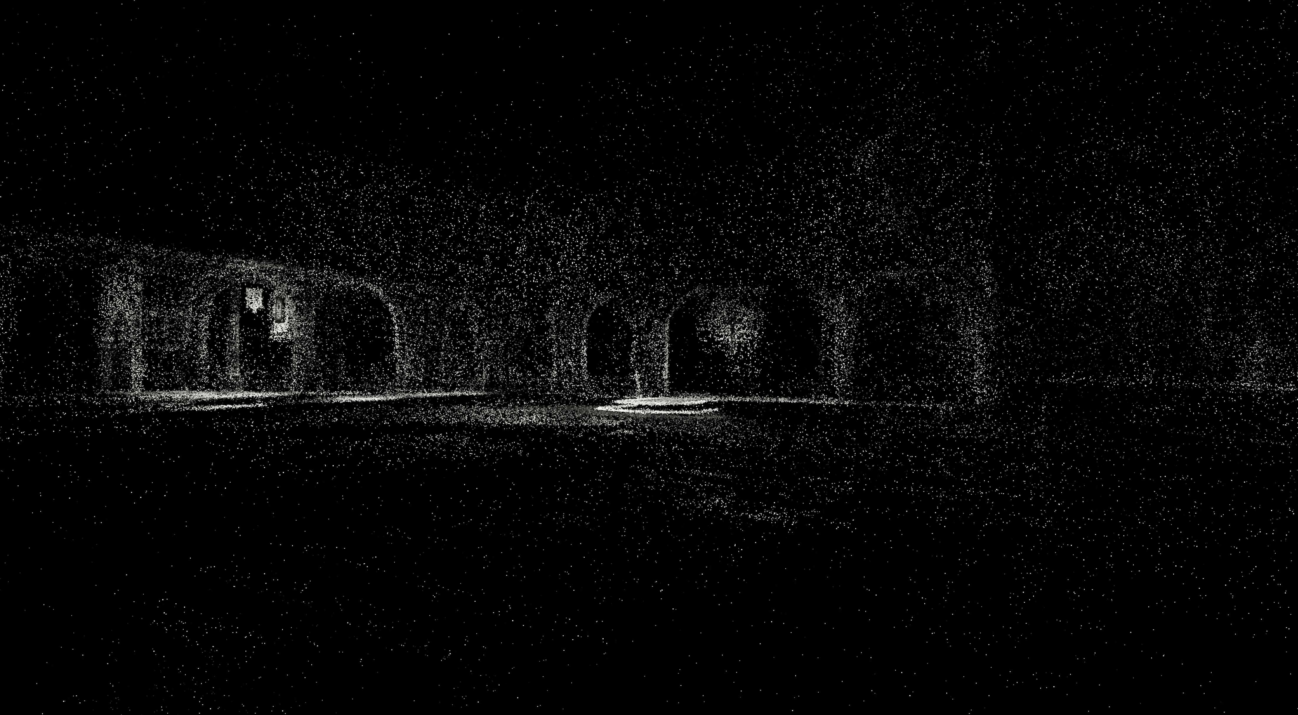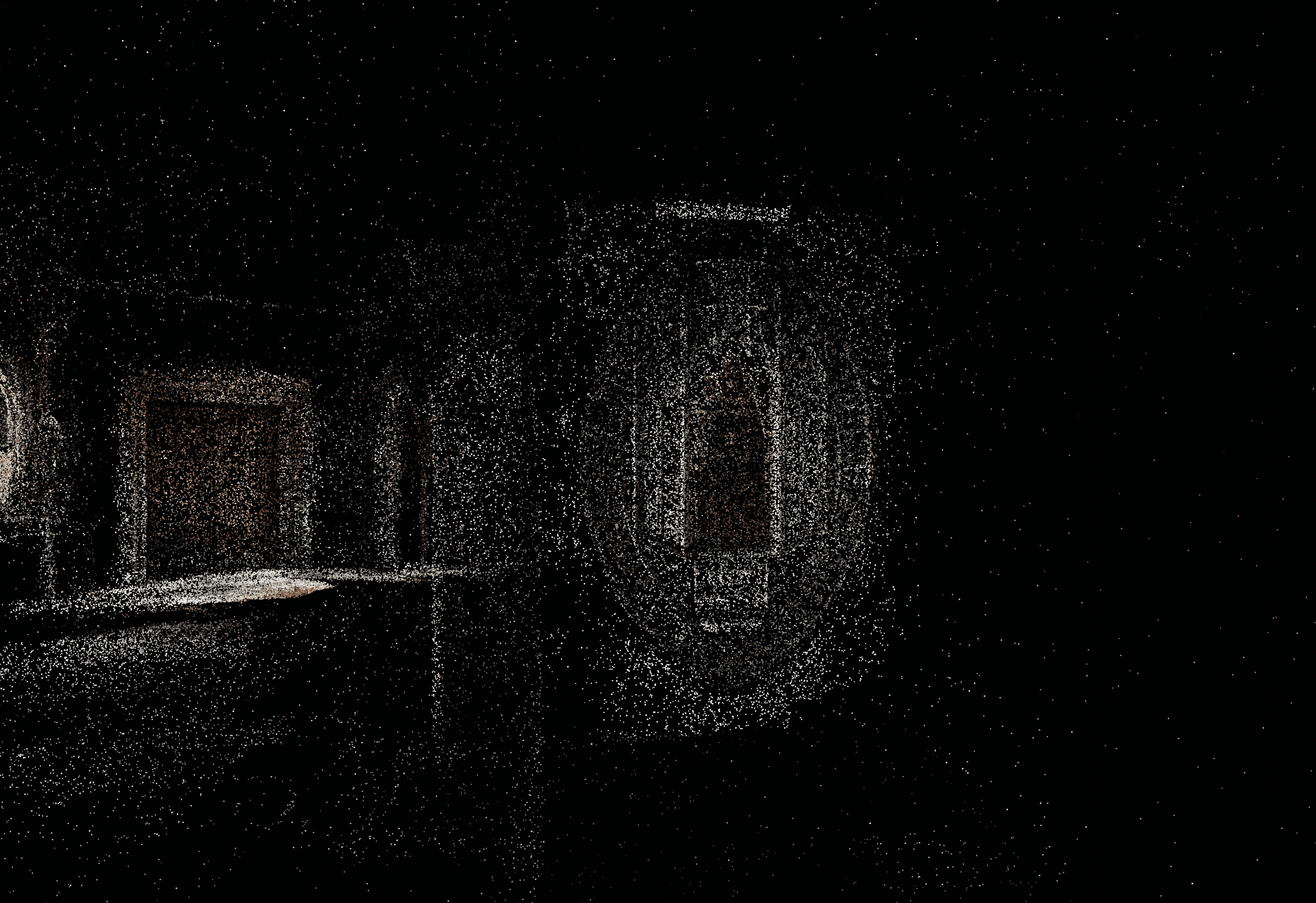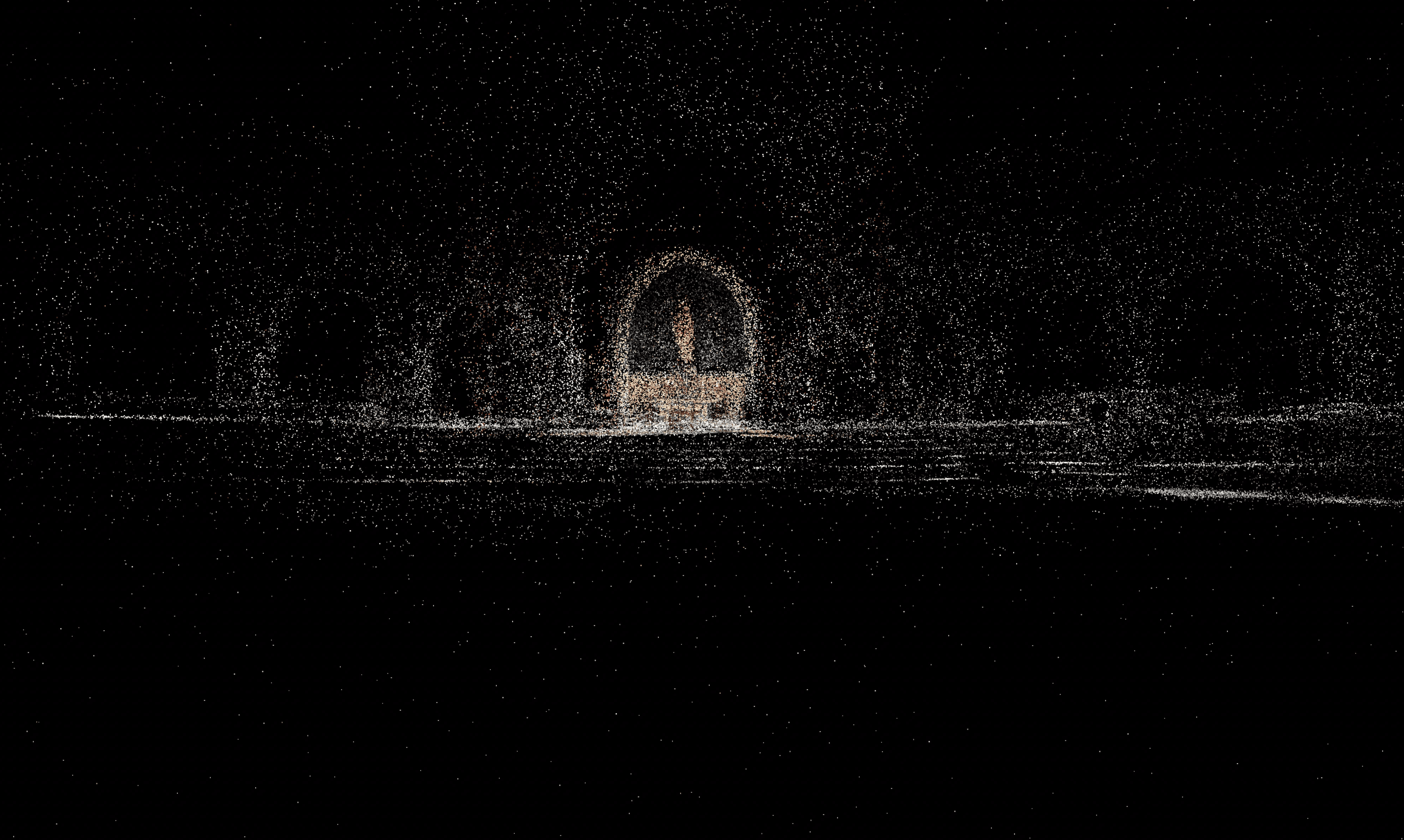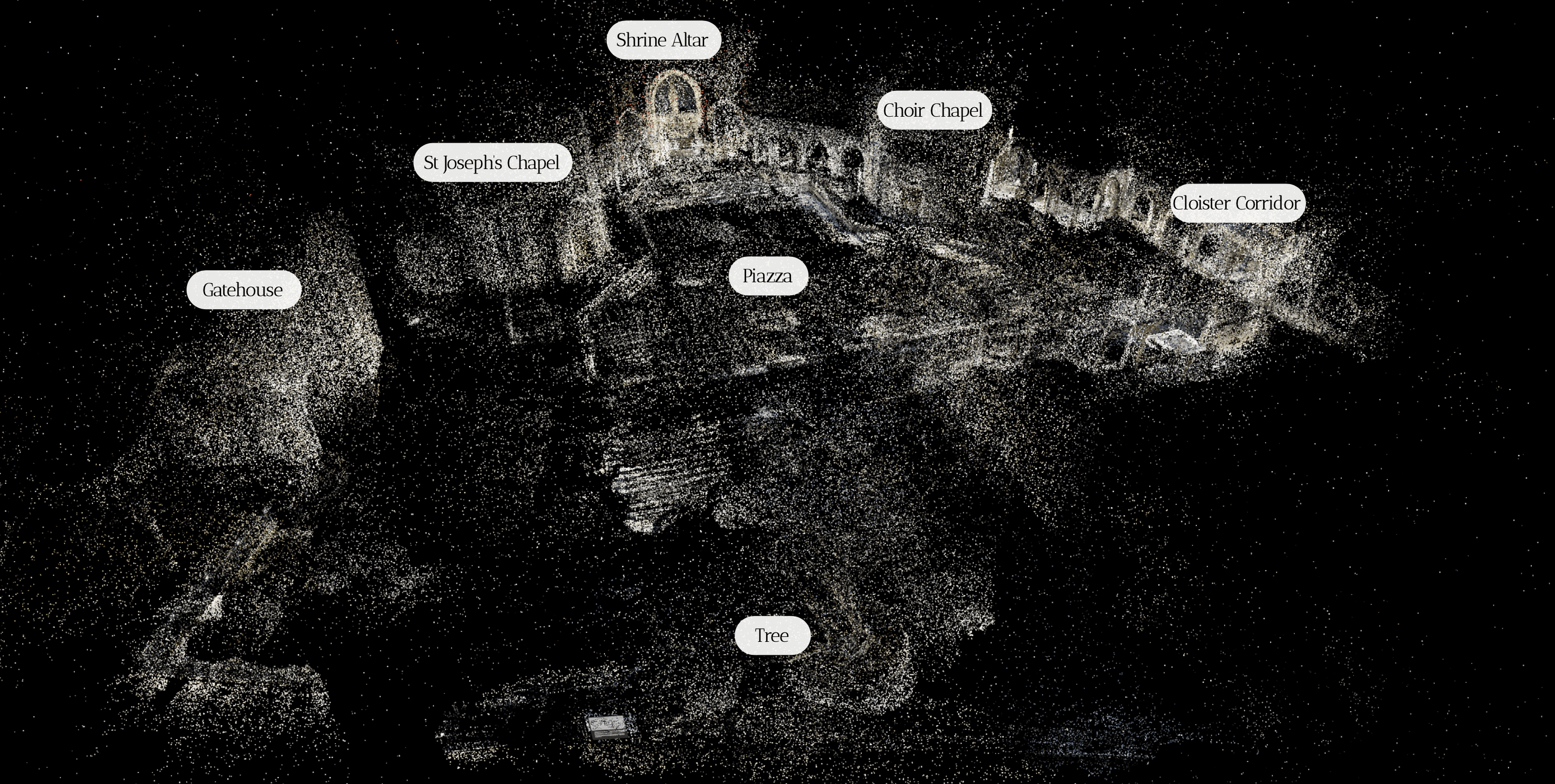 To visualise this, I continued on from my previous experience with Trace and point cloud photogrammetry to test scanning various elements of the site, eventually deciding on my focal point of the main shrine-piazza complex.